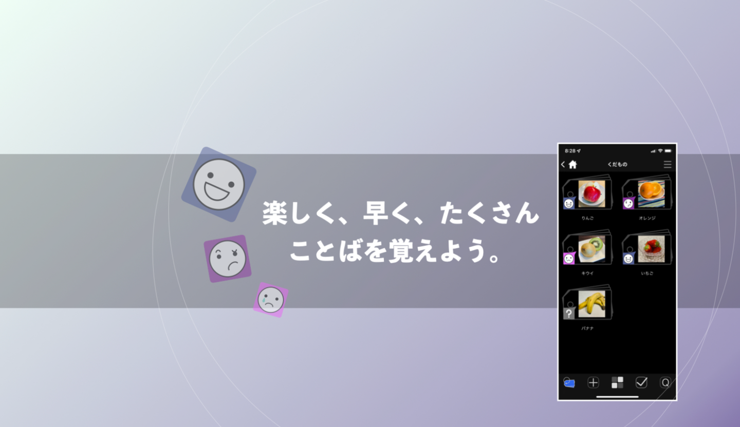 難聴児の家庭学習のために開発されましたが、健聴のお子さんの自主学習や、大人の方が専門用語を覚える時など、使い方次第で様々な用途に活用することができます。身の回りのものを写真に撮って、楽しく言葉をたくさん覚えましょう。